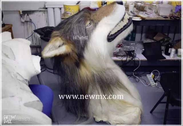根据导演的要求,巨狼需要完成全部头部运动和颈部运动;并且在肢体动作上要求:侧卧、踏地、蹲坐、蹲下或扬身低头准备攻击状;巨狼全部面部表情可达多种,呲牙、嘴部开合、怒目、眼球转动、眼皮眨眼开合、耳朵抖动竖立、鼻子呼吸、嘴唇可卷起或后翻,门牙露出、嘴唇可模拟说话状态等。