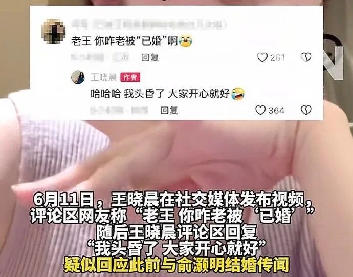 王晓晨回应:6月1日晒玫瑰花,6月11日评论区回复网友“我头昏了,大家开心就好”,疑似默认关系。