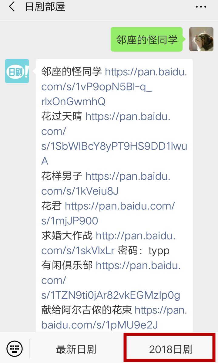 新号的主页菜单中有2018年的日剧资源整理!部屋君设置了2000部日剧日影的自动回复,回复剧名就可以获取。