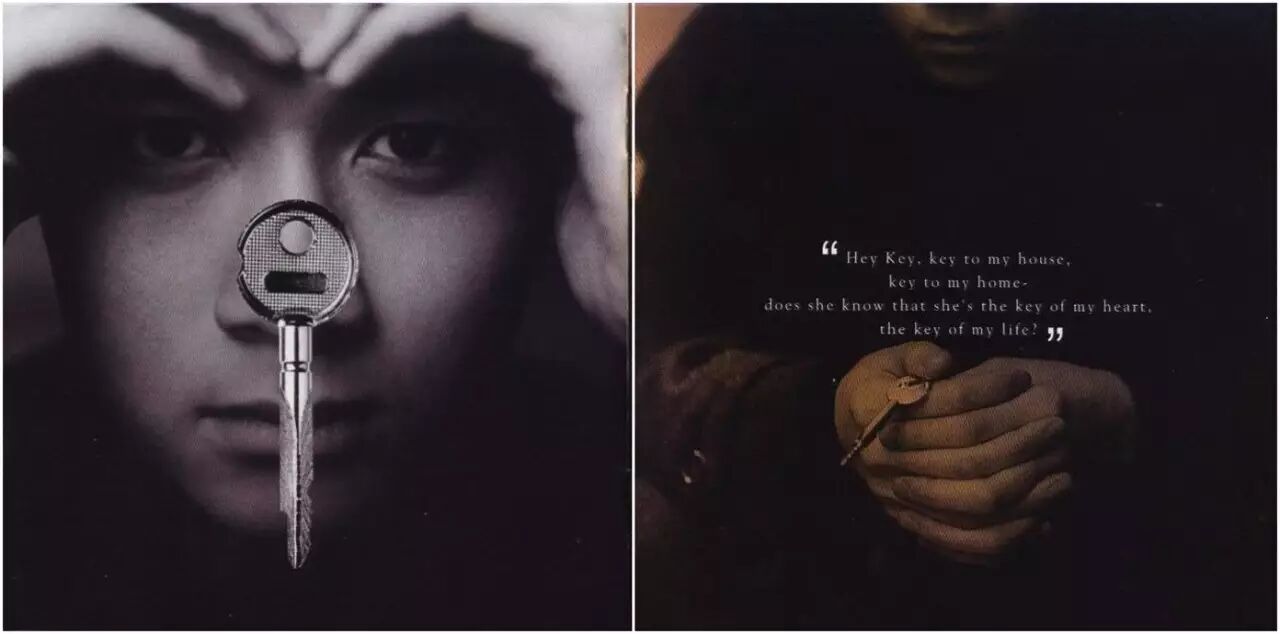 封套上是古巨基拿着一把门匙若有所思的形象,内页中印着"Hey Key,key to my house,key to my home,does she know that she's the key of my heart,the key of my life ?"的字样,那把门匙也极为醒目,暗色调令整体意境十分具有艺术美感。