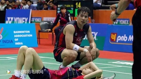 在混双半决赛中,鲁恺/黄雅琼和高成炫/金荷娜决胜局战至18-14时,韩国队美女金荷娜,不小心被队友高成炫用球拍打到后脑位置,球拍竟被打断,金荷娜倒在场地上,神情痛苦,比赛被迫暂时停止。