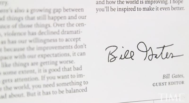 今年的《TIME》1月首刊请来比尔·盖茨(Bill Gates)兼职当主编,本意是想请这位曾经的世界首富、微软总裁谈谈,信息爆炸时代里有关商业和科技的变化趋势,没想到他却趁此机会,大谈他对世界未来抱有无限希望的理由。