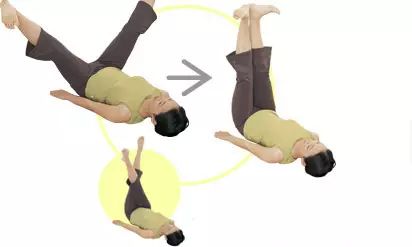 2:保持仰卧姿势,两手自然放至身体两侧。膝盖伸直并向上抬腿,脚尖向外绷直,两腿先张开再闭拢。重复次动作20次。脚尖绷直,两腿快速交叉,可以更大程度地拉伸大腿内侧肌肉,瘦身效果更佳。