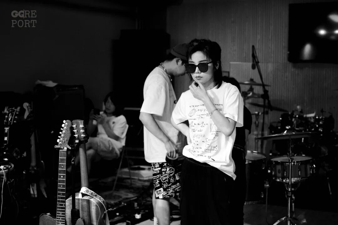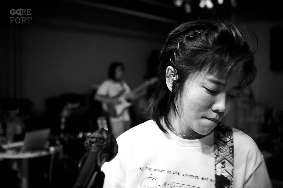 乐队对音乐的设想在北京通州的排练室完成试错。许飞甩头,匀速摇摆,脚在老旧破损的运动鞋里敲打着节拍,偶尔蹦高闹出动静。连续半个月的排练让几人疲惫累积,丧丧地调侃如何在巡演中推情绪让观众摇起来。原本的日本贝斯手无法回中国参与演出,由执行经纪临时客串弹键盘,她只在小时候学过钢琴。