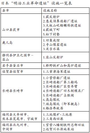 日本文部科学省文化厅2015年5月4日宣布,国际古迹遗址理事会已将这(明治工业革命遗址)23处设施列入申遗“建议名单”。“国际古迹遗址理事会”2015年5月已完成日本“明治工业革命遗址”申报世界文化遗产的评估,世界遗产委员会会议将对此进行审议。
