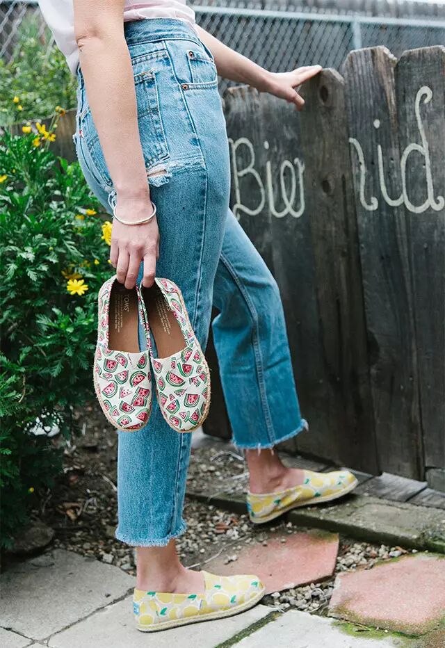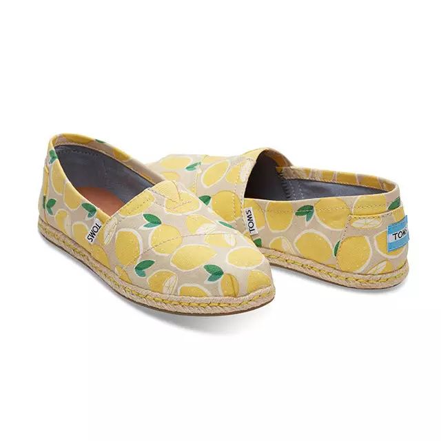TOMS的柠檬西瓜元素印花的渔夫鞋让整个夏天都清爽起来,让我们心里的草疯长起来~