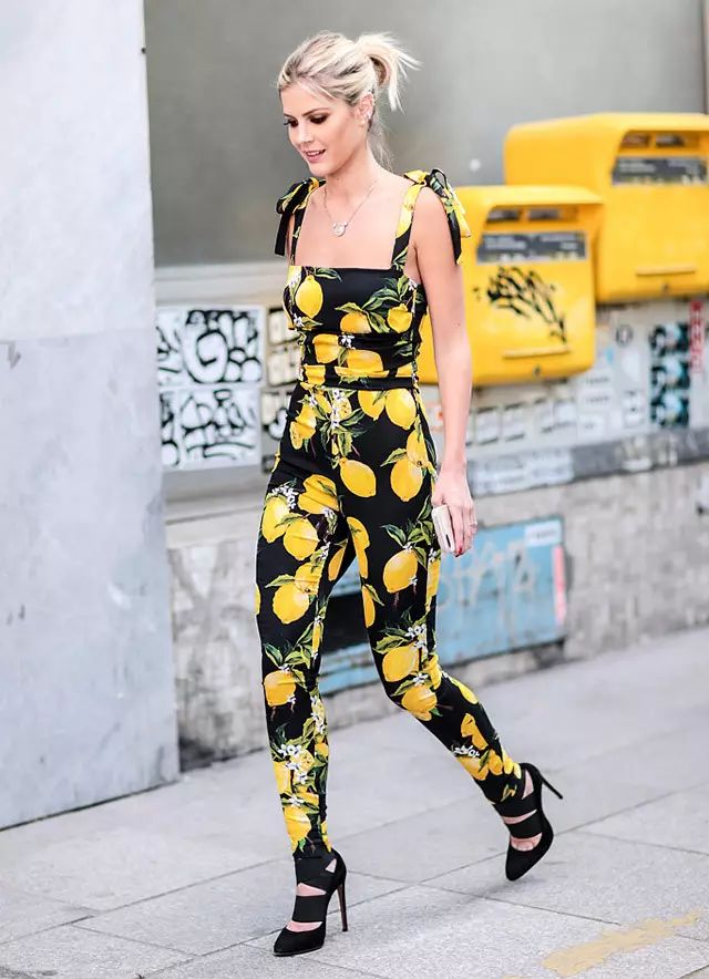 尽显优雅女人味的连体裤+活力十足的柠檬,休闲又干练大方。