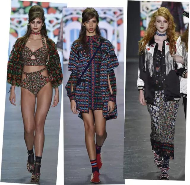 Anna Sui精致奢华、优雅独特的黑色雕花布料上点缀了鲜活的草莓和樱桃,有种别样风情之美。