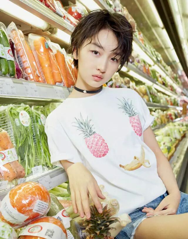 私底下周冬雨也很喜欢这类水果元素的T恤,缤纷的水果和鬼马精灵的她非常相配哦。