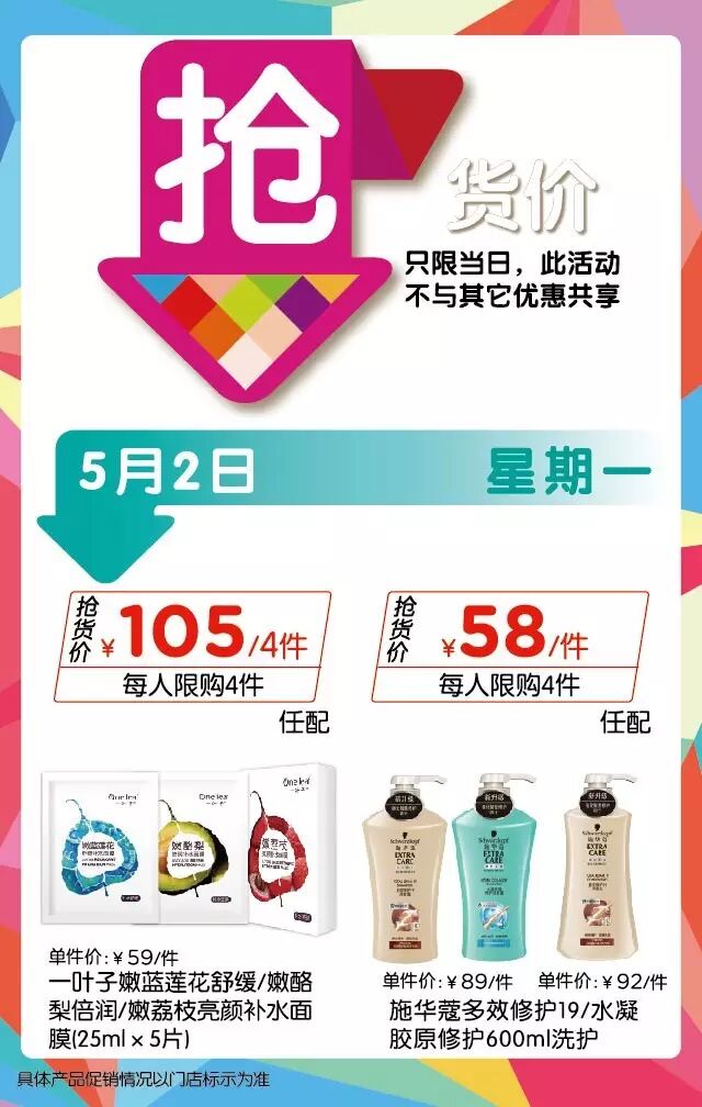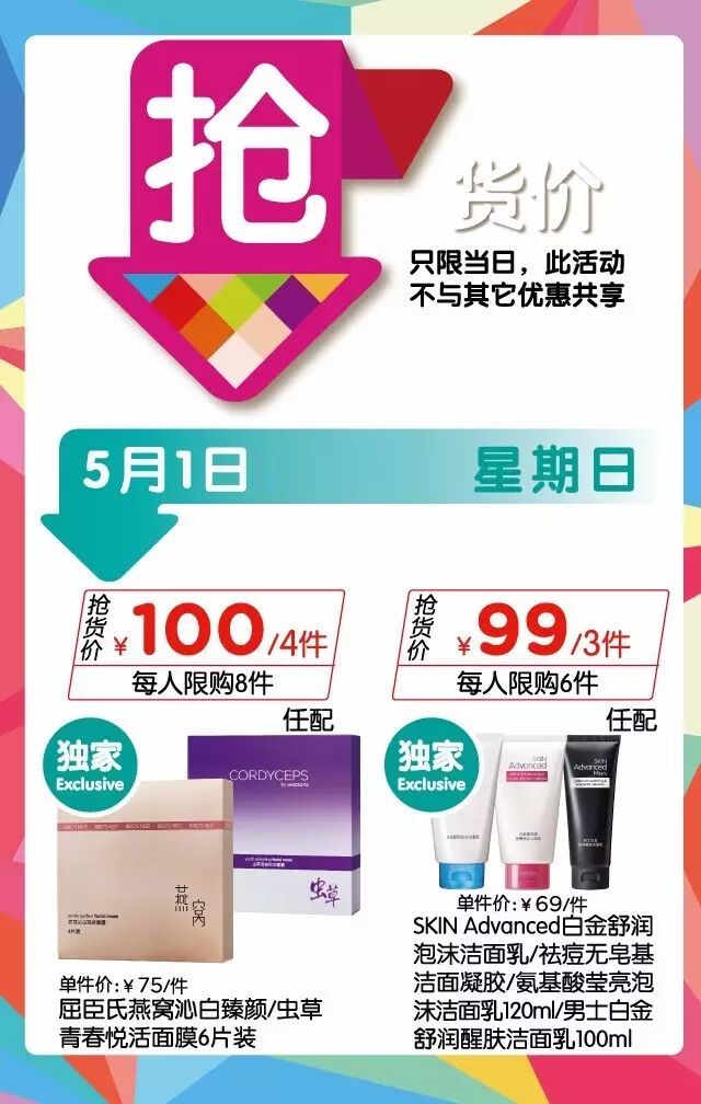 ● 4月28日-5月2日,会员购物满150,乐享10倍积分! 17大美妆专柜跨品牌任配,消费满258立减50,满399元立减100元!