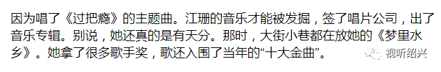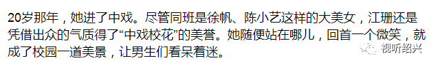 江珊这一路走来,不以大红大紫为成就,也不以回归平凡为落寞。她只是每个阶段,都坚持做着自己。无论岁月如何更变,她仍保初心。这个走过时光却容颜未改的女人,在人生路上漫漫前行,坚定而美丽。