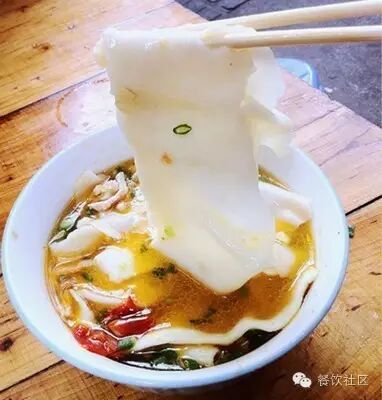 铺盖面,顾名思义。就是一整块的面皮盖在面条上面。撒上细细的香葱香味很下面还有已经超级软软糯糯的黄豆。入口即化,口感非常好。铺盖面是重庆荣昌县的一种汉族特色面食,通常是在揉着比较硬的面团上,通过两只手掌的夹、扯等动作,从面团上拽下巴掌大小的面片,稍微拉扯均匀后下锅煮熟即可,非常有特色的一款面条。