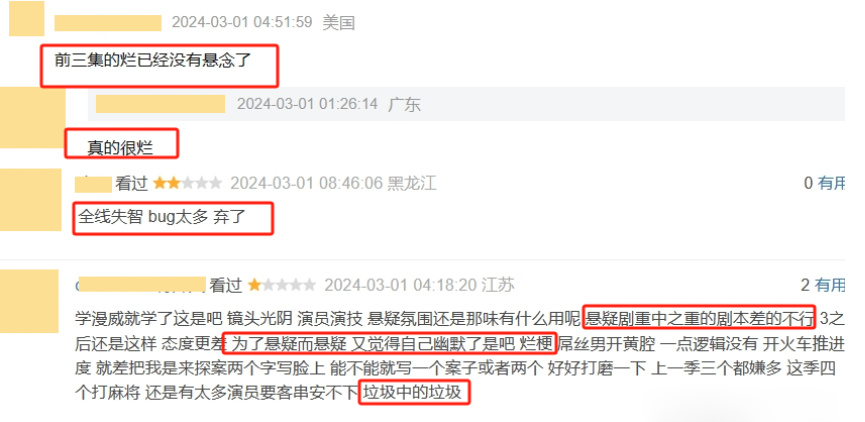 有人说它是“垃圾中的垃圾”;有人说它“剧本差的不行”;有人说它“为了悬疑而悬疑”;有人说角色“全线失智,bug太多”~~