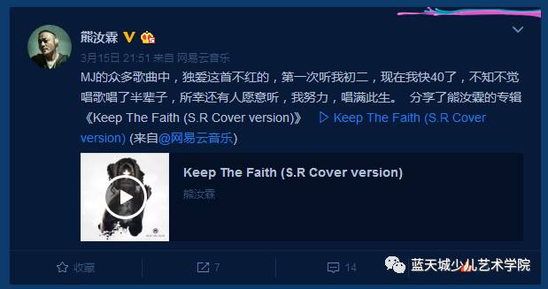 今天小蓝给大家抢先带来一首小熊老师翻唱 Michael Jackson 的歌曲《 Keep The Faith》。
