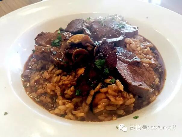 羊里肌肉吃起来偏干,就像一般希腊食物的肉片那样,不过令KiKi惊艳的是炖饭,入口时一股羊味冲击着味蕾,浓郁的香气逼人,米粒硬度恰当好处,口感极优,配上各式菇类、红酒糖渍及山羊乳酪的巧妙结合,让整体口感更丰富。非常适合爱吃羊肉的朋友们享用。
