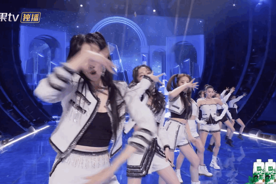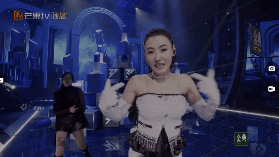 对比组内其他成员的诸多舞蹈动作,张柏芝全程似乎只有原地叉腰扭肩和走动叉腰扭肩两套动作。