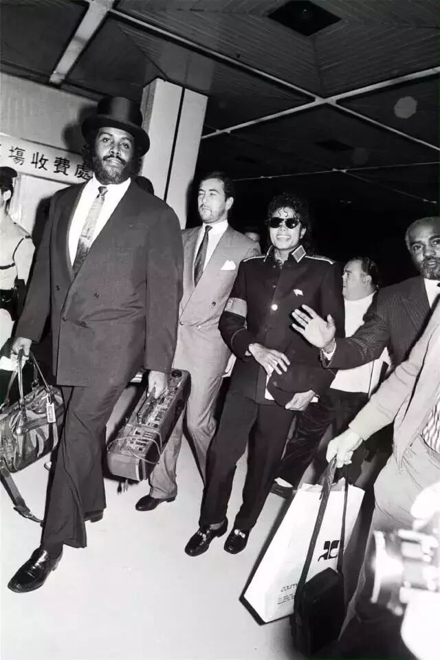 迈克尔杰克逊本尊在保镖的保护下,于1987年11月10日在香港启德机场出发去悉尼。这次他被记者拍到。