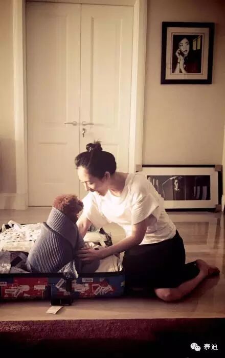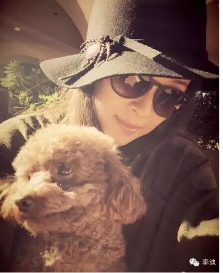 章子怡除了常常把这只泰迪狗带在身边,还亲切的唤它“儿砸”。