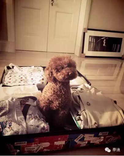 小泰迪怪怪的坐在行李箱里,是不是再等着带你去旅行呀?
