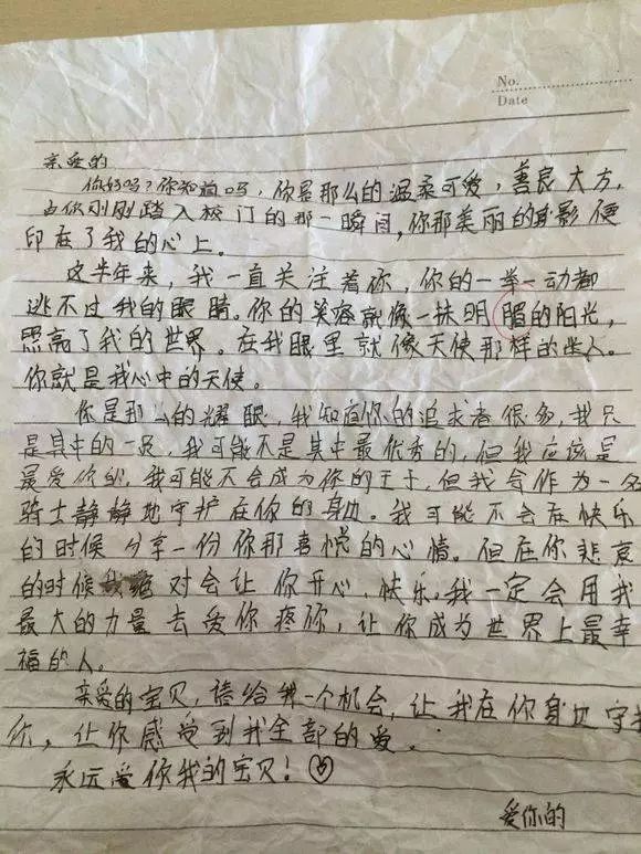 估计也只有学生时代才能写出如此牛B的情书吧~