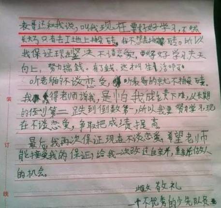 这一封情书正能量超足,好好学习是正道,不然是要去搬砖的,小朋友是知道的。