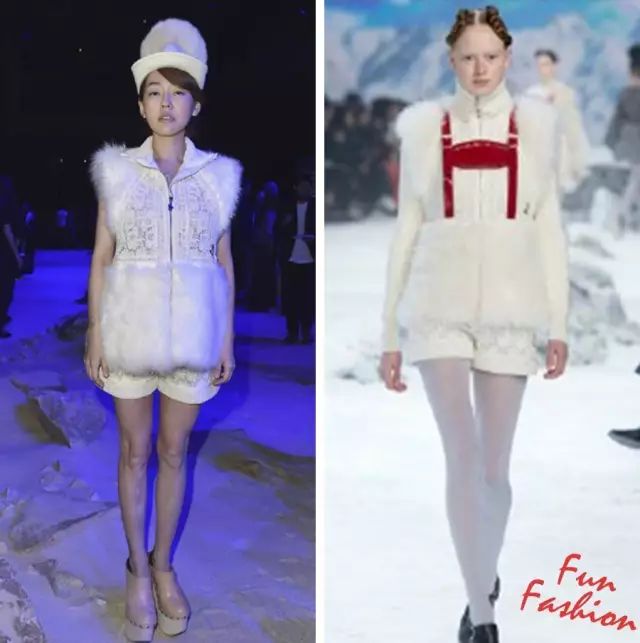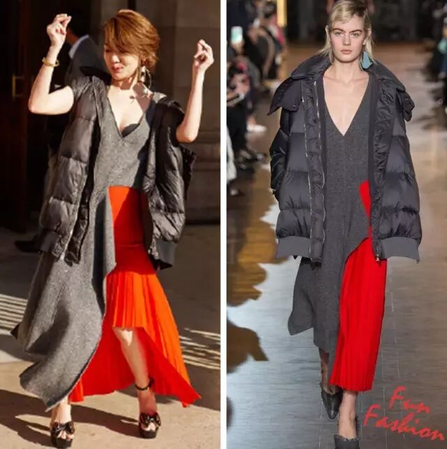 前一阵终于找回“时髦赶脚”的小S在Stella McCartney秀场上的这一套造型还是不错的,厚马甲配裙装,走了一次慵懒风,驾驭起来也是游刃有余。