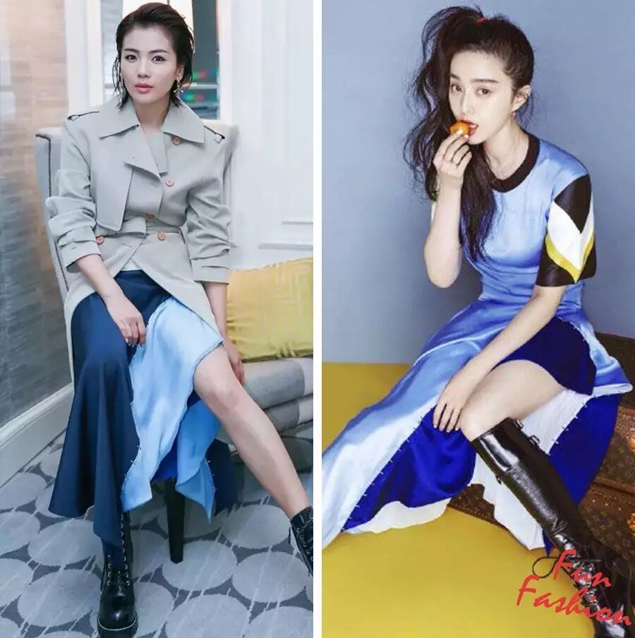 内搭的水蓝色撞色裙装范爷也穿过类似系列,怎么样,你们更钟意哪一款?