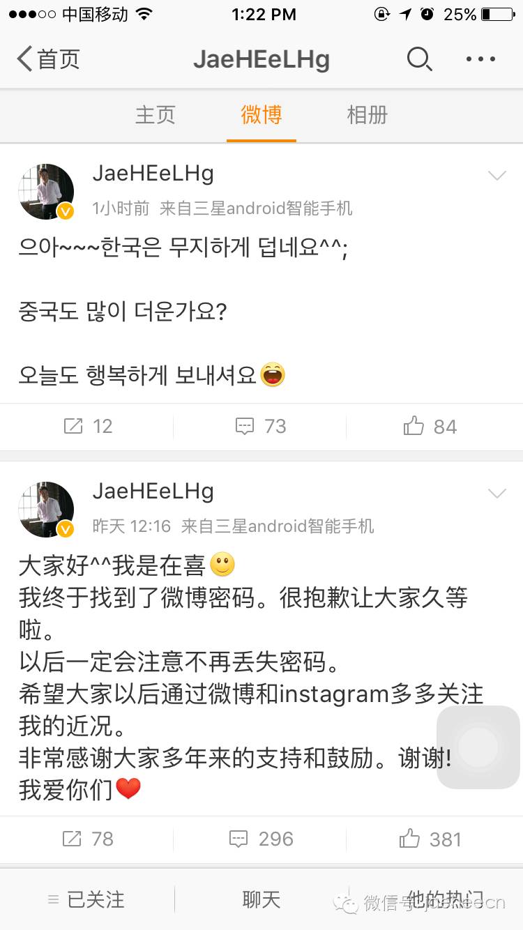 果然,昨天在我刚发完推送,他就找回微博密码了,还很亲切的发了一条中文。然而,在喜是什么嘛,哈哈哈 吐槽下。