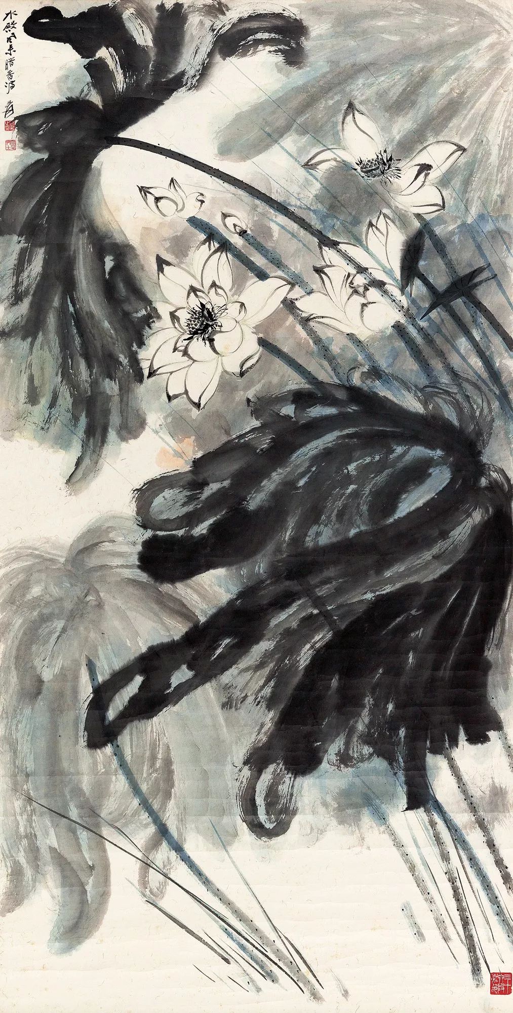 1957 年,张大千突然罹患眼疾,视力的下降使他不再方便作精细描写,遂开始在创作中尝试泼墨、泼彩的写意手法,从上世纪五十年代后期至八十年代初期,前后延续了近三十年时间。在初始阶段,他开始将细笔画风向粗笔、破笔泼墨方向转变,这一时期以泼墨为主,兼泼少量颜色。六十年代始,画面上泼彩则逐渐加重,泼彩法成为其最主要的创作手段之一,面貌逐渐成熟。