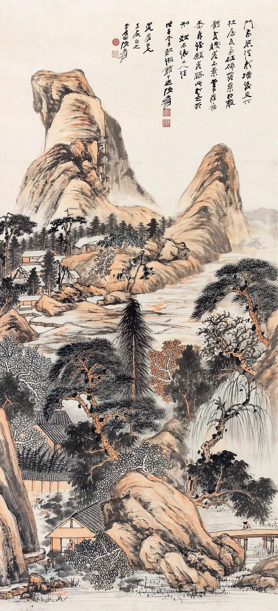 从此幅作品可以看出,张大千的绘画从总体上讲,既有酣畅淋漓、内涵深厚的传统意蕴,又有雄奇瑰丽、清新俊逸的写真精神。这一时期的绘画,以写石涛而扬名,再上溯唐宋,下逮元明,下足功夫,得其质朴法度与笔致墨趣。