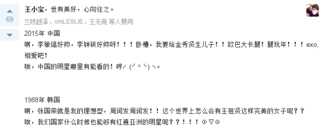 知乎上有对2015年中国和1988年韩国的当红明星做了对比: