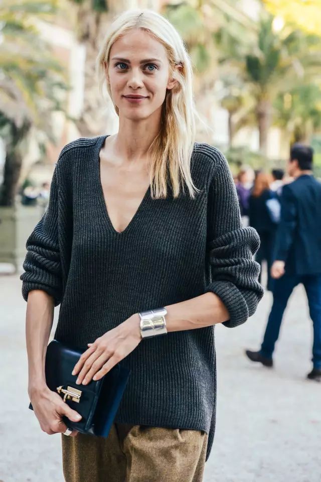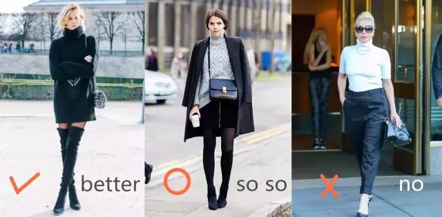 要减重的另一个要素,在于深色系。相比白色或亮色等偏暖色系,黑色等深色系有更好的显瘦效果。因此如果你要选择高领内搭的话,最好选择深色且宽松的。
