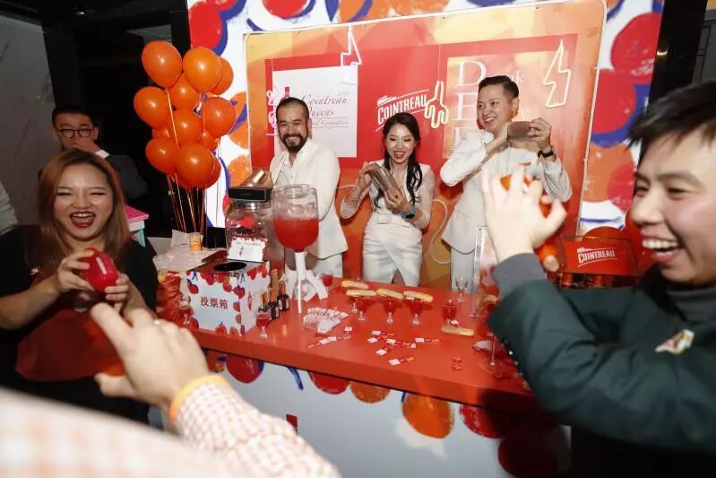 白天比赛中第一组登场的Belinda邱丽慧来自深圳Fannou House,不仅笑容甜美、英文流利且自信满满,她将酒单融入中式卷轴请四位外国评委用毛笔描出“君度”中文字充满有趣巧思,现场炒米调酒更是呈现听觉视觉嗅觉味觉多感官体验。晚上的派对是仿佛将大家带到法式嘉年华,在君度橙酒、旋转木马、粉色马卡龙中流连浪漫气息。