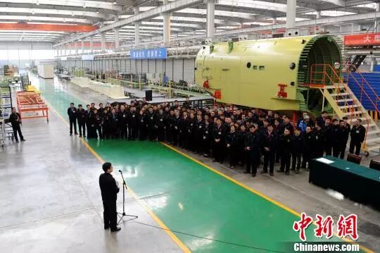 全球最大水陆两栖飞机AG600大部件中机身西安下架。张远 摄