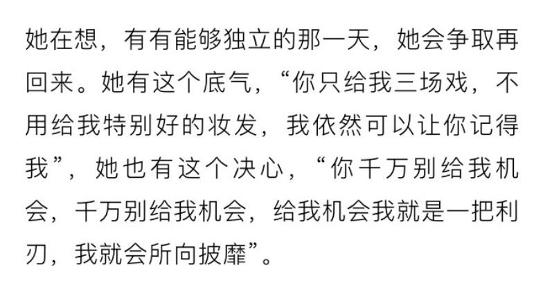 对于和自己有同样困境的女演员,杨雪不去触碰对方的伤疤。