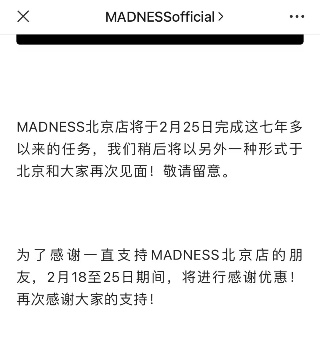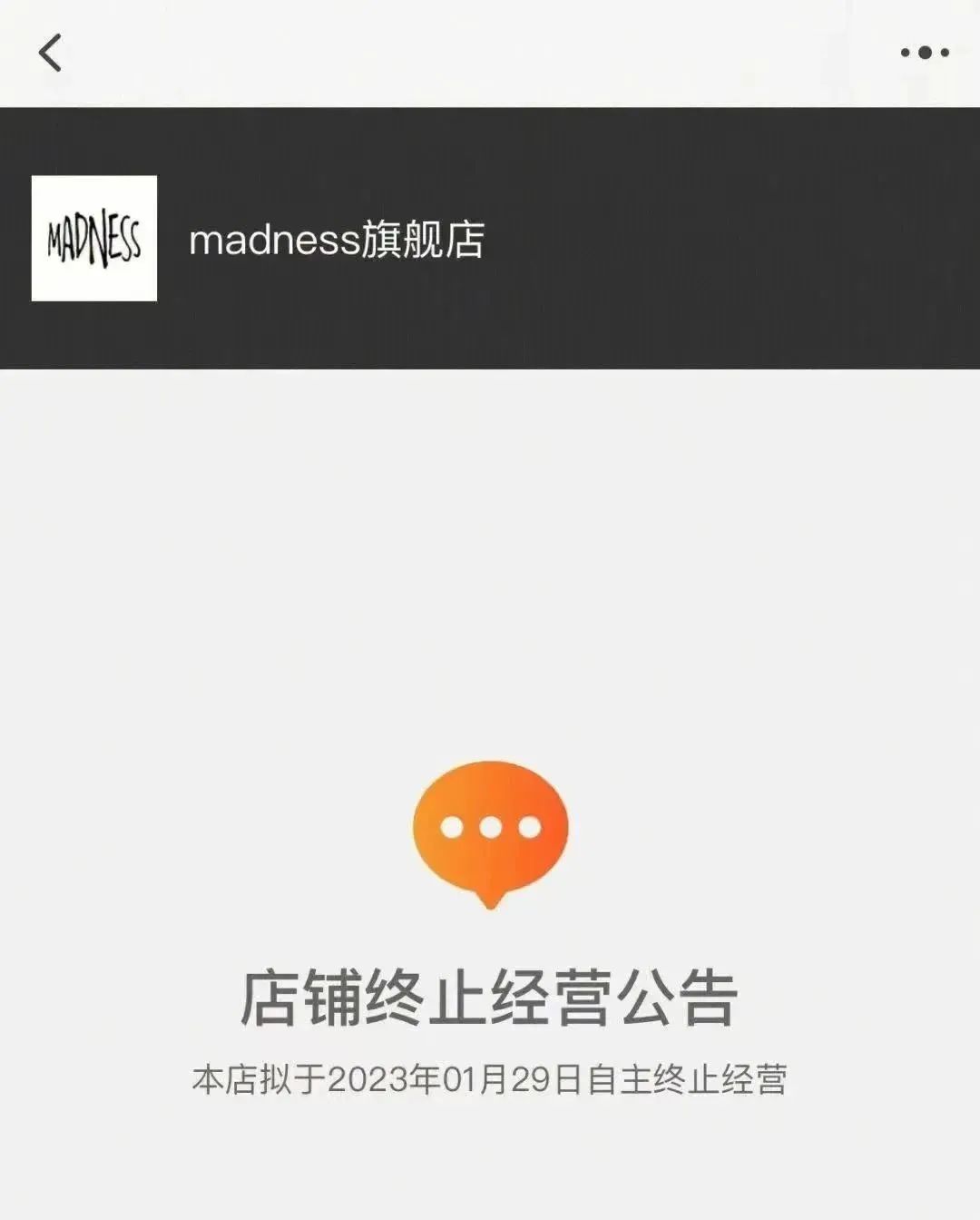 就在今年初时先后关闭了品牌天猫旗舰店,以及唯一的一家门店北京三里屯MADNESS。