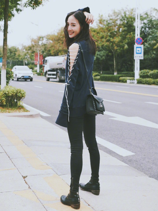 对于日常穿搭,张钧甯就偏向于休闲,但是又不乏时尚个性,绑带的长袖上衣搭配一件黑色紧身裤,纤细的身材展现出来,看起来很休闲的穿搭其实设计都是很出众的。
