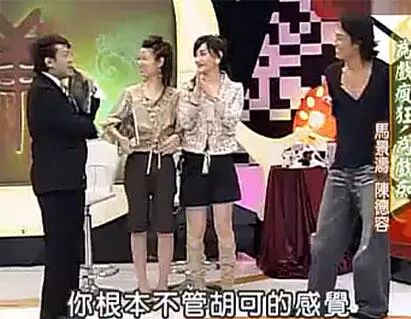跟早年一起合作《倚天屠龙记》的叶童、周海媚一起领奖,马景涛突然叫了一声“张无忌,狂吻吧”,然后转身狂吻两个女嘉宾。