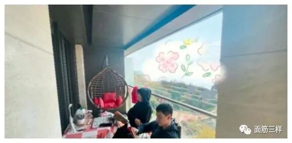 吕一家的阳台非常大,不仅摆放着多盆的花卉,还有书桌。两口子坐在阳台上,非常同步又安静地看书。