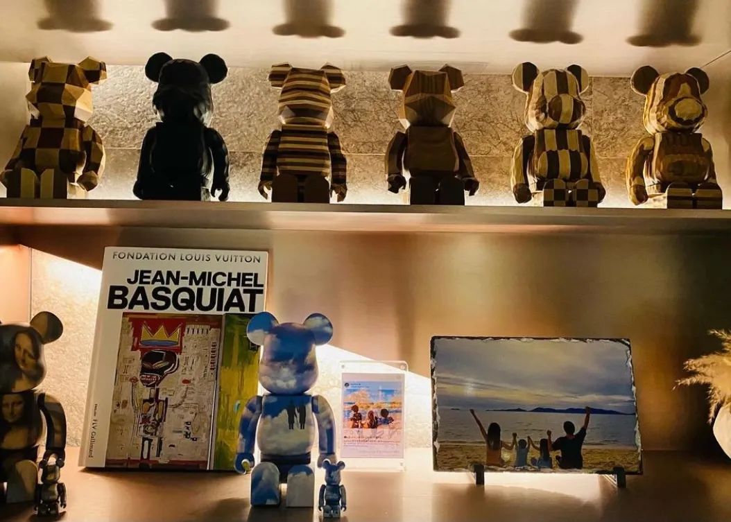 从他po上ins的照片看,每一个都是特别款。这一柜子的积木熊的价格加起来,大概可以买辆车。