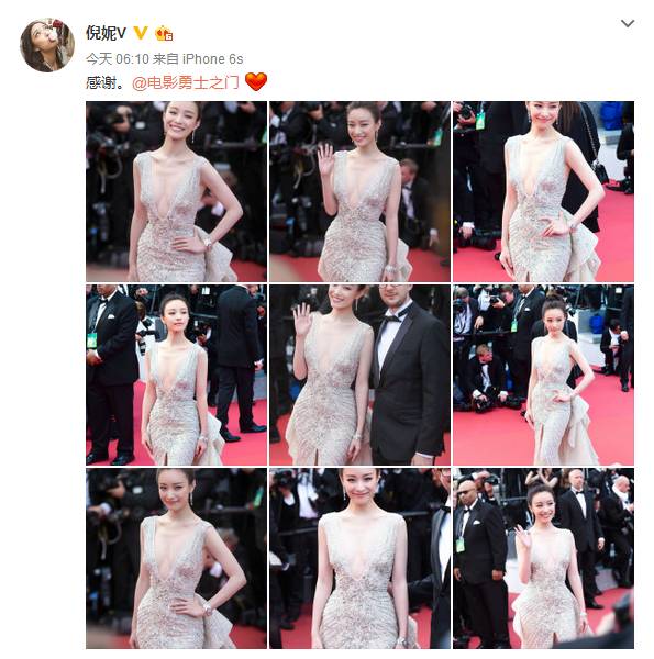 在戛纳红毯结束后,还发布一组自己的红毯美照,并配文感谢电影影《勇士之门》。