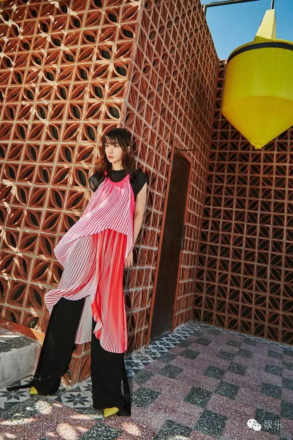 第四款:文艺。今夏最流行的丝绸飘带阔腿裤配上褶裥吊带裙,脚踩黄色尖头鞋的柳岩将硬朗与柔美融合在一起,站在夏风之中,显得文艺气息浓厚,有着都市女人的无限风情。