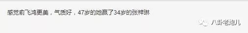 不过网友说感觉俞飞鸿更美气质更好,47岁的她赢了34岁的张梓琳。