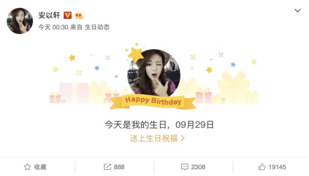 在祝福自己生日快乐的时候,还不忘再秀一把恩爱,将自己台北答谢宴的现场视频置顶。