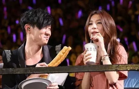 JJ曾经在演唱会上唱《豆浆油条》的时候突然走下台坐在喜碧旁边,还把咬了一口的油条给喜碧吃……我们高冷小公举当场就表情尴尬拒绝了同吃一根油条的邀请……