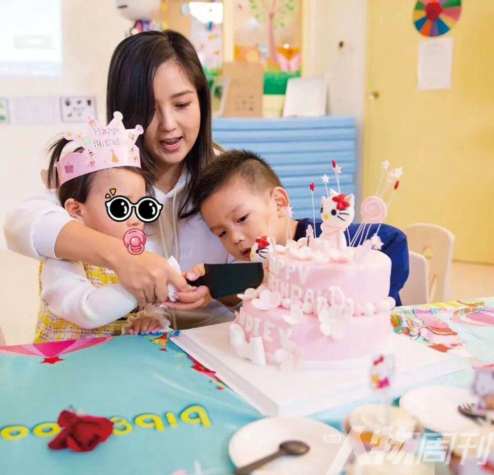何洁为女儿庆生切蛋糕