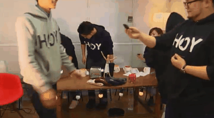 另外,鹅屋自HOY2014起就统一了服装,每一期HOY都会有特制的卫衣,可以看到上面写着HOY三个字母,目前基本是黑、灰、深蓝三种颜色。