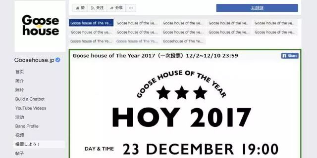 在HOY开始之前会有一次预选投票,在Goose house的官方facebook会开放投票页面,页面罗列了那一整年所有翻唱过的歌曲(一般是50首左右)供大家投票,每位用户只能投一首歌。