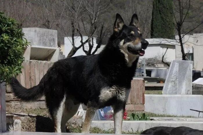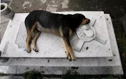 墓区的工作人员说,Capitan偶尔会出去找食物,但天黑一定会回来,什么都不做,只是静静地趴着,赶都赶不走。