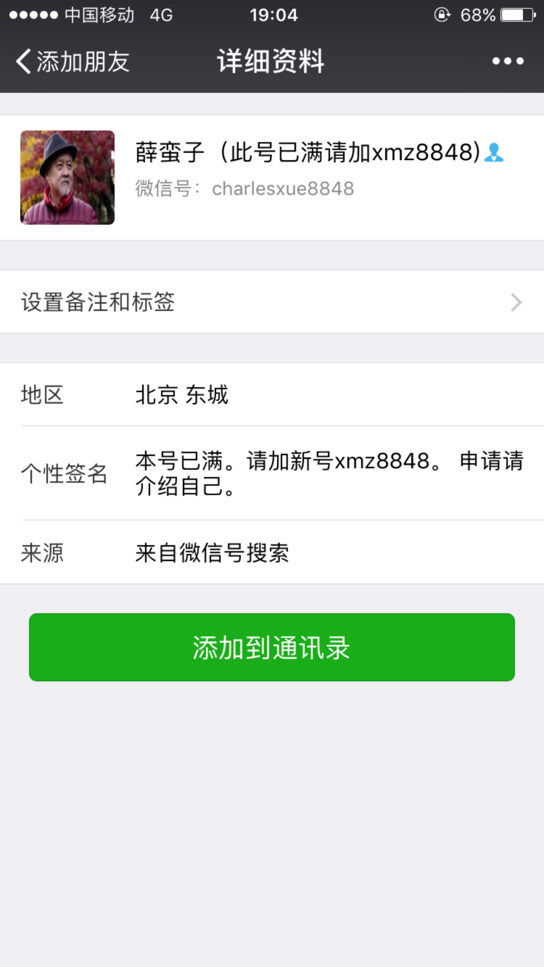 同样,我通过自己的搜索方法,很快就找到了徐小平老师的微信。